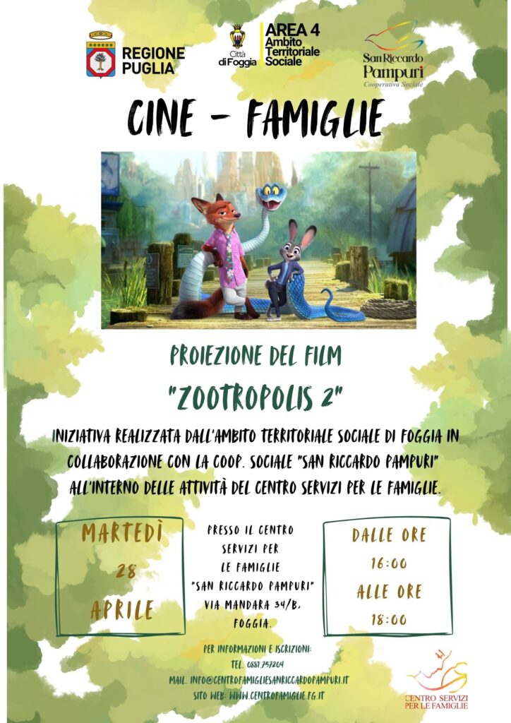 Siete pronti a tornare nella città dove “tutti possono essere tutto”? Per il nostro prossimo appuntamento di Cine-Famiglie, Judy e Nick hanno bisogno di piccoli aiutanti per risolvere un nuovo, incredibile mistero! Vi aspettiamo!